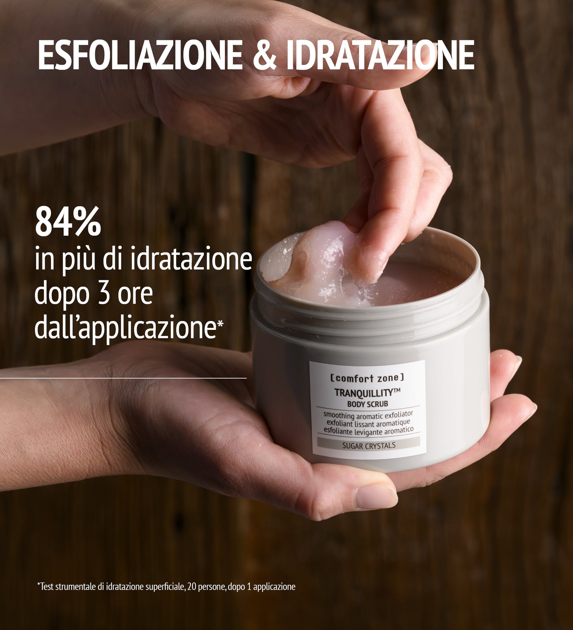 Esfoliante levigante aromatico Ritrova una pelle luminosa e morbida con Tranquillity™ Body Scrub, il nuovo esfoliante per il corpo con cristalli di zucchero. La preziosa formula a base di oli di amaranto e mandorla, si fonde sulla pelle durante il massaggio rinnovandola delicatamente. Il risultato è una pelle levigata e nutrita, pronta a ricevere i trattamenti cosmetici successivi. L'iconica fragranza, composta da un mix di oli essenziali di Arancio e legno di cedro, avvolge il corpo e favorisce una sensazione di relax e benessere. La dimensione e tipologia dei cristalli di zucchero, rende il prodotto efficace e delicato sulla pelle. 92,6% ingredienti di origine naturale.