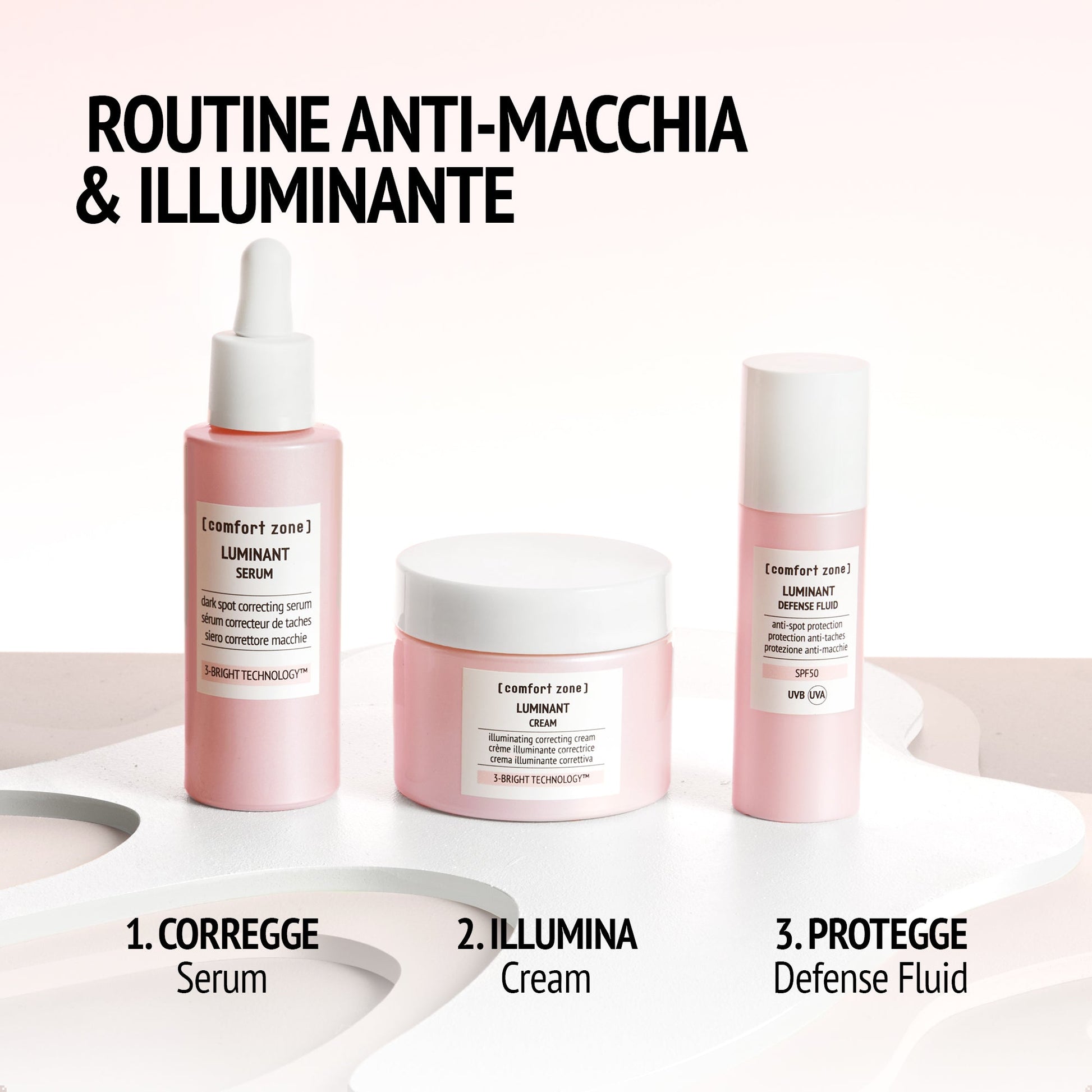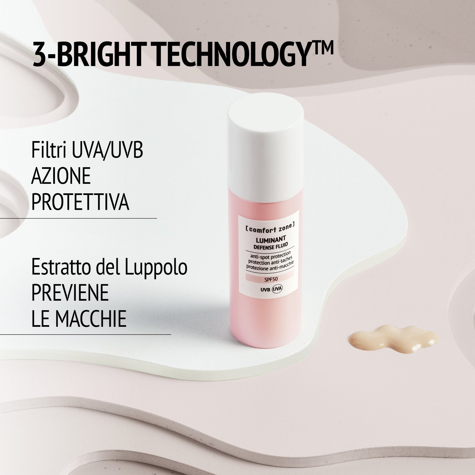 Proteggi la tua pelle ogni giorno con il fluido solare antimacchia Luminant. L'alleato perfetto per difenderla dai raggi UVA-UVB, dall'inquinamento urbano e per aiutare a prevenire la formazione di macchie. Agita il prodotto per ottenere la perfetta formulazione per un tocco asciutto ed un assorbimento veloce, ideale per completare la tua beauty routine e proteggere la tua pelle ovunque! Testato sotto controllo dermatologico, è ideale per tutti i tipi di pelle. Può essere usato gravidanza.